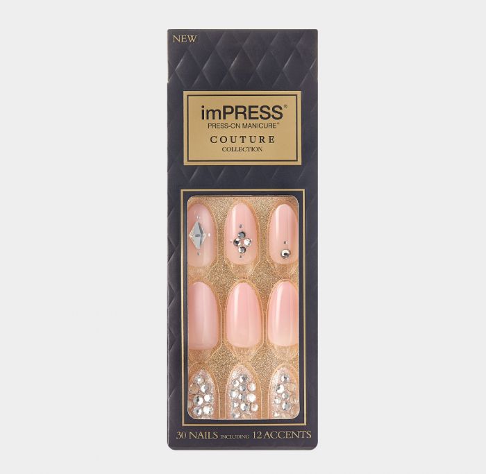 - Impress Kit Manucure : une large déclinaison de couleurs et de motifs, parfait pour varier les styles. Ongles courts et carrés, 30 capsules par boîte, accompagnées d’un chiffon nettoyant et d’un bâton en bois. Comptez environ 10€.