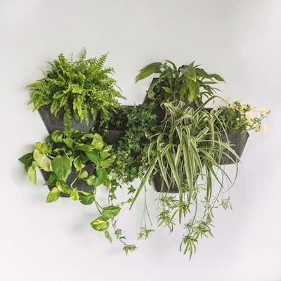 Le géotextile vertical (24 EUR chez PoussePousse) transforme un mur en mini-potager, grâce à des poches en plastique recyclé. Une solution écologique pour cultiver ses herbes ou légumes tout en décorant l’intérieur.