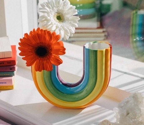 Le vase arc-en-ciel (26,90 EUR chez Cadeau Maestro) ne passe pas inaperçu. Double vase pour deux bouquets, couleurs vives, forme originale : il habille l’intérieur avec une touche de fantaisie, idéal pour qui aime la déco et les objets joyeux.