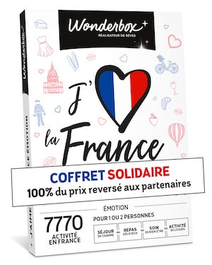 Wonderbox (49,90 EUR) propose une box pour explorer les trésors de France, avec la promesse de ne prélever aucune commission sur les activités. Un coffret solidaire, 100 % français, pour soutenir les acteurs du loisir et vivre de nouveaux moments forts.